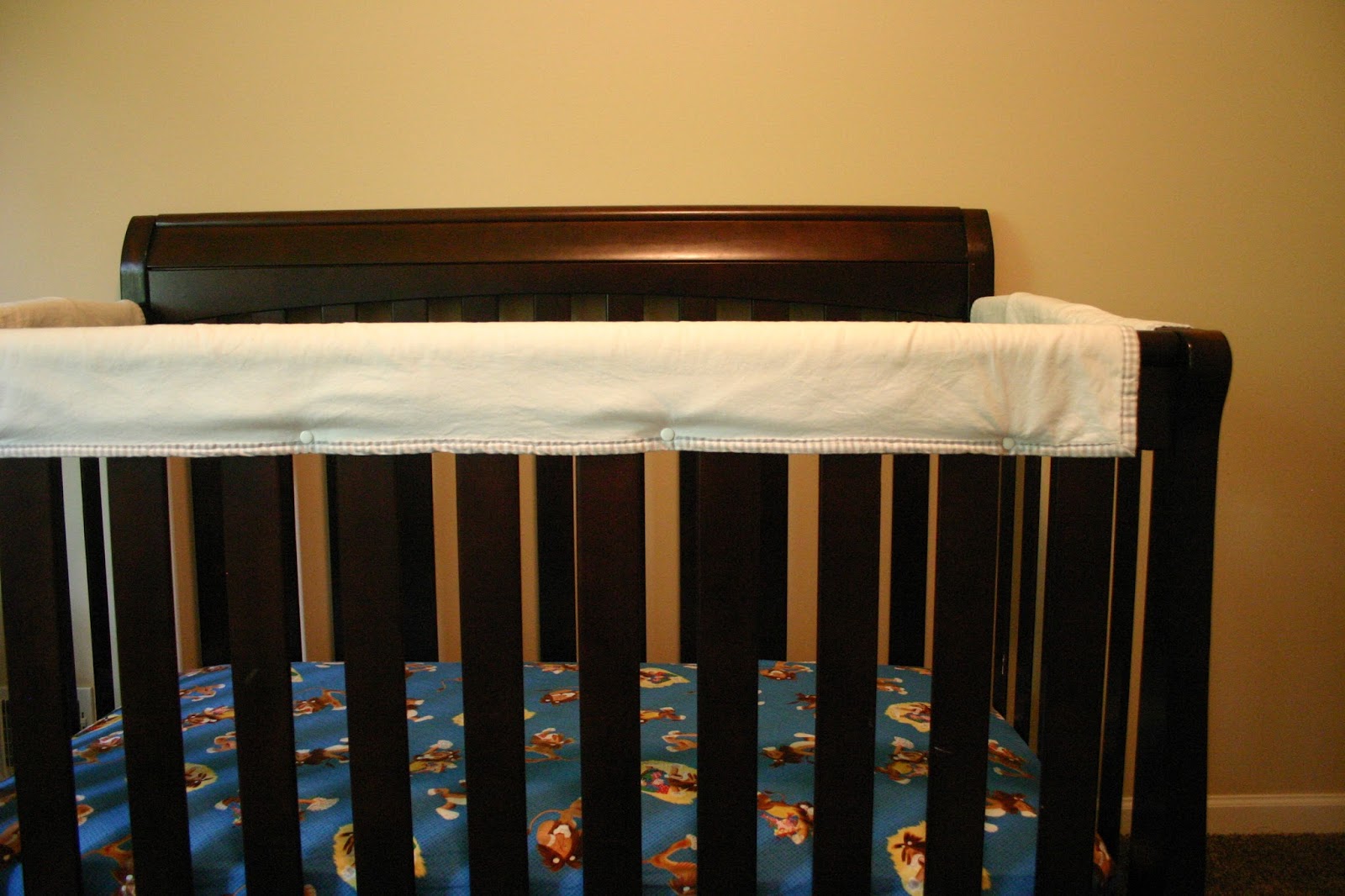 Next, measure your crib. Measure the length of the front, both sides, then make sure to measure exactly how wide you'll need to make the teething guard by measuring from the top of the crib to where you want it to come down to. I wanted mine to be about 6 inches wide. Also, this width needs to be big enough to add a piece of velcro or snap to keep it attached to the crib.